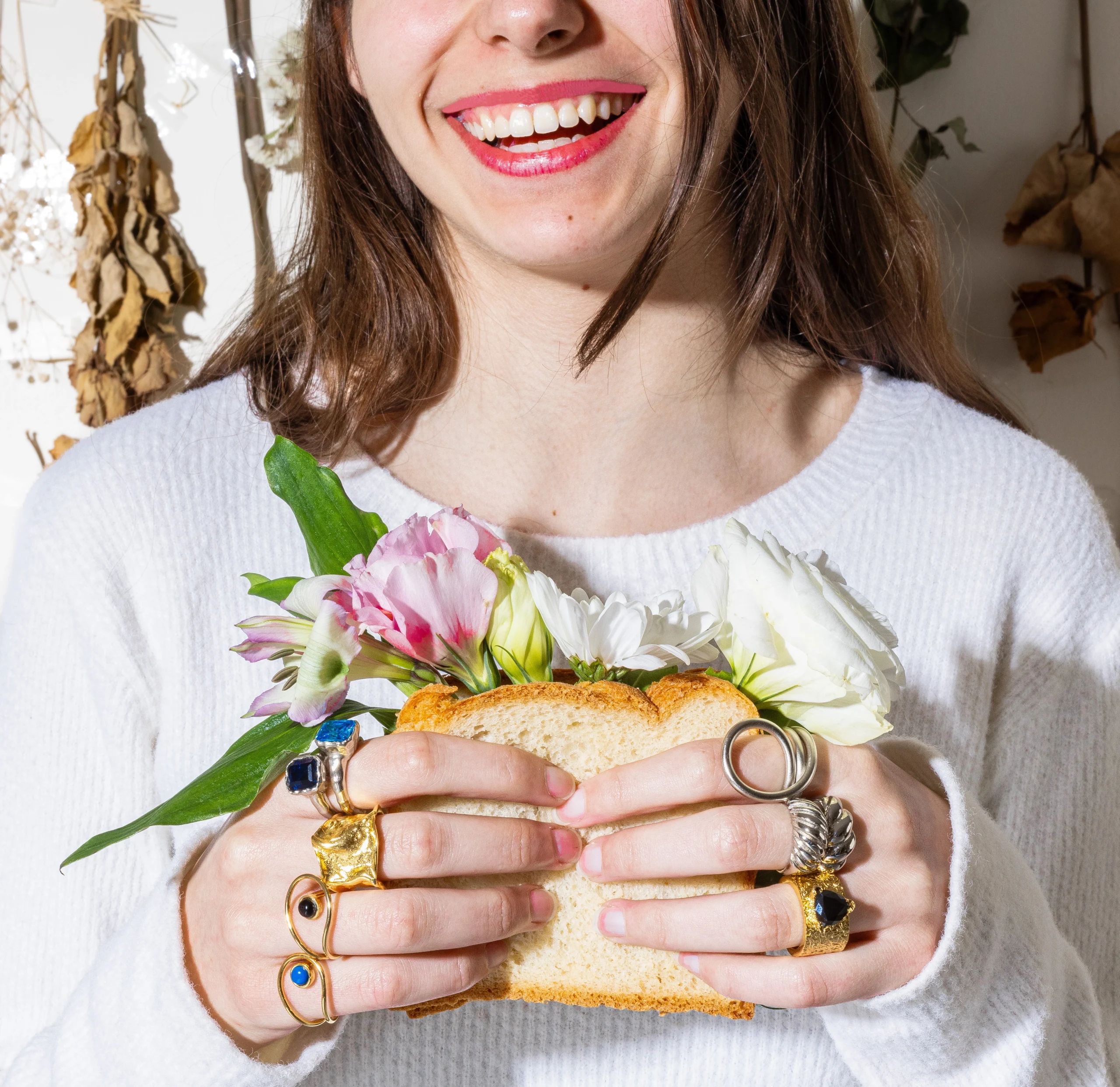Silver or gold-plated ring with rectangular zirconia stones in vibrant shades: navy, emerald, turquoise. Stackable, bold, and effortlessly chic.